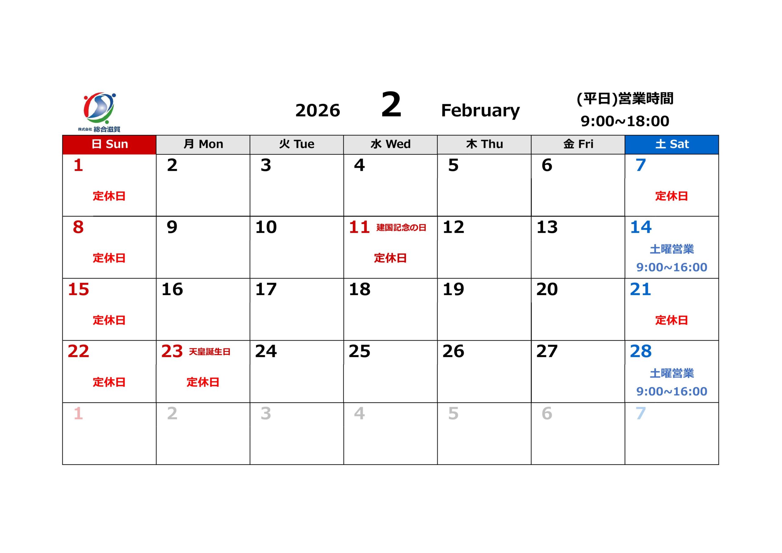 平日9:00〜19:00 / 土曜 9:00〜16:00